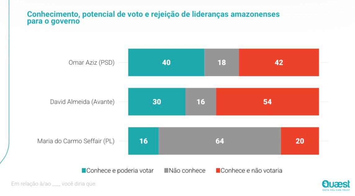 Tanto o governador como o prefeito figuram em outras pesquisas como os gestores mais mal avaliados do Brasil, dado confirmado pela Quaest que confirma reprovação de quase 60% do trabalho do prefeito David Almeida, e de mais de 50% do governador Wilson Lima. Os dados demonstram que os eleitores estão mais conscientes à falta de resultado a promessas não cumpridas e ao aumento dos problemas sociais.